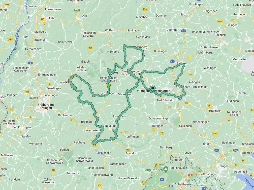 Motorroute 14 van Kurvenkonig in het Zwarte Woud / Breisgau, 200km, 5-6 uur rijtijd.