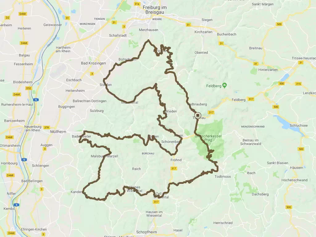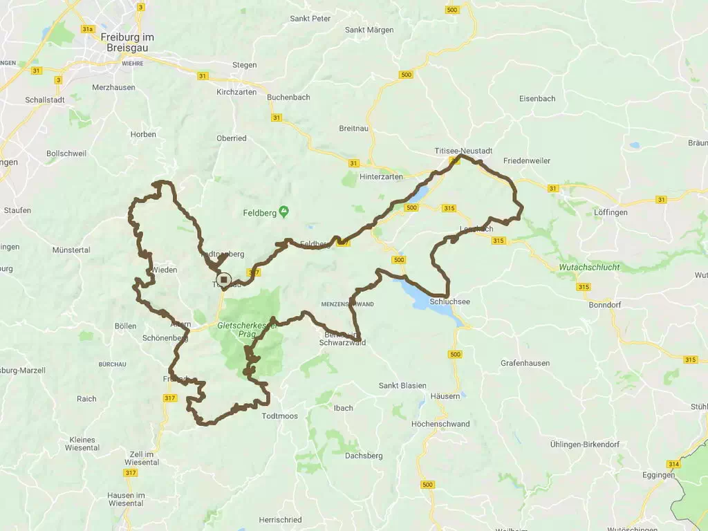 Prachtige route door de bergen van het Zwarte Woud. Begin en eindpunt in Todtnau, dan naar de Schauinsland-straße en binnendoor via prachtige en slingerende wegen via het Gletscherkessel Präg terug naar Todtnau.