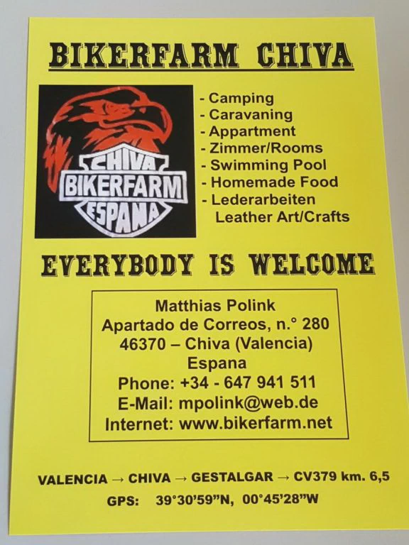 Bikerfarm Chiva is het gehele jaar geopend.